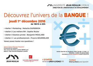 Vous êtes intéressés par le secteur bancaire ? Rendez-vous le jeudi 1er décembre pour découvrir les métiers de la banque à l’occasion d’une soirée spécialement organisée avec la Caisse d’?pargne.