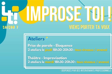 L'association Imp(r)ose-Toi ! organise des ateliers hebdomadaires d¡¯¨¦loquence et de th¨¦?tre d¡¯improvisation. Ces ateliers sont encadr¨¦s par des professionnels des disciplines en question et sont adapt¨¦s au niveau des participants. Ils prennent place les lundis, mardis et jeudis soir, tout au long de l'ann¨¦e !